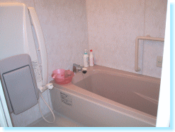 座ったままでも入浴できる装置がありますが、入居者は「こわい」と、あまり利用はしないそうです。 |