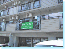 | 広島市中区舟入川口町、舟入高校の正門前に大きな賃貸マンションがあります。このオーナーである、松本さん(株式会社松広・代表取締役)の奥様がヘルパー2級を取得されたのがきっかけで、グループホーム開設に乗り出されたそうです。マンションの2階部分を改造し、2001年2月1日にオープンされました。 |