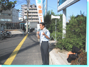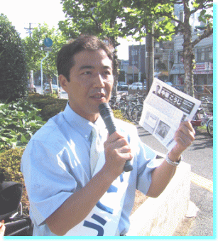 8月5日(月)街頭演説がんばっています。この季節は、30分の演説で、汗だくになります。 |