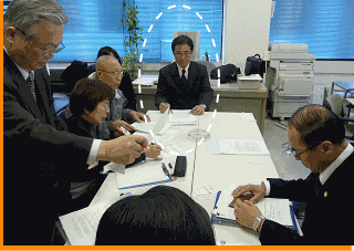 2010年2月19日、民主党広島県連において、広島市身体障害者団体連合会の皆さんから障害者の方々を対象とした駐車禁止除外車両制度の見直しに関するご要望を受けた時の様子です。 |