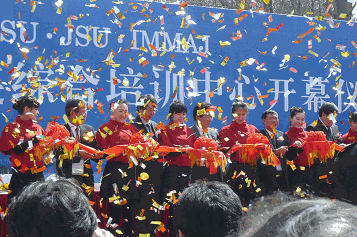 2010年4月2日、「中国船員大連総合訓練センター」開所式及び記念式典に出席しました。写真は開会式のクライマックス、テープカットの瞬間です。