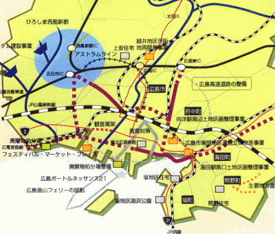 - 東部地区連続立体交差、(これは、いつも渋滞するJR向洋駅から、海田駅までを立体交差にする事業です。概算事業費、約960億円(側道整備費を含む)完成予定年度、平成20年代中頃。)
