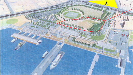 下図A以北部分については、広島港宇品内港地区として、旅客ターミナルの完成に合わせ、大規模商業施設や高層複合住宅の整備を進めています。4.4haある小・中学校用地の有効活用についても今後知恵を出していかなければいけません |
